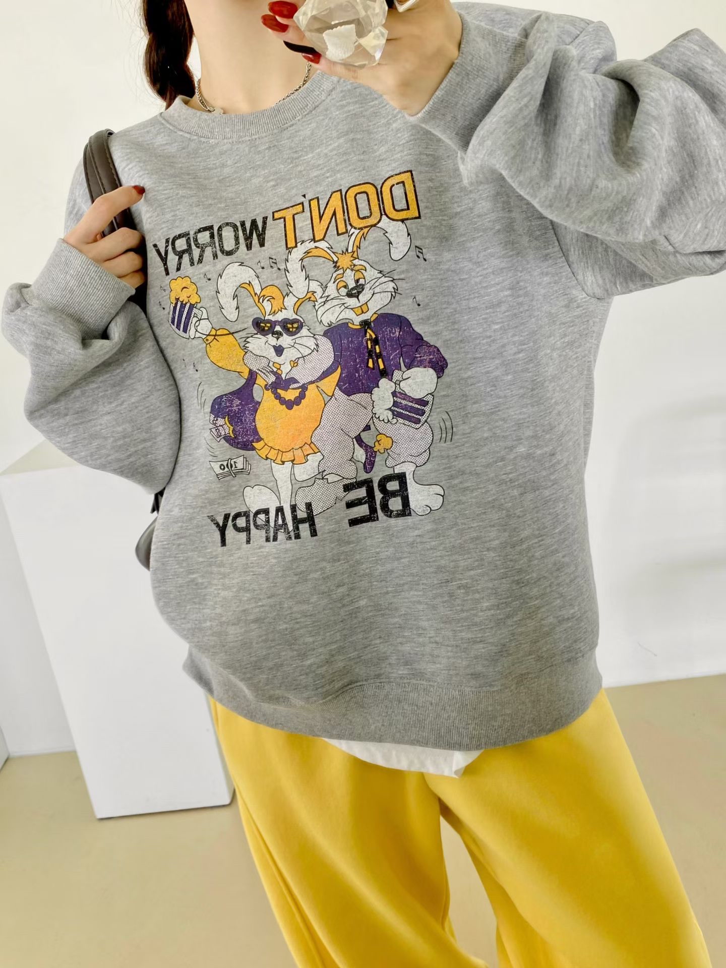 NB03 開心兔衛衣 3色 白/灰/藍 Chest 46" length 27"