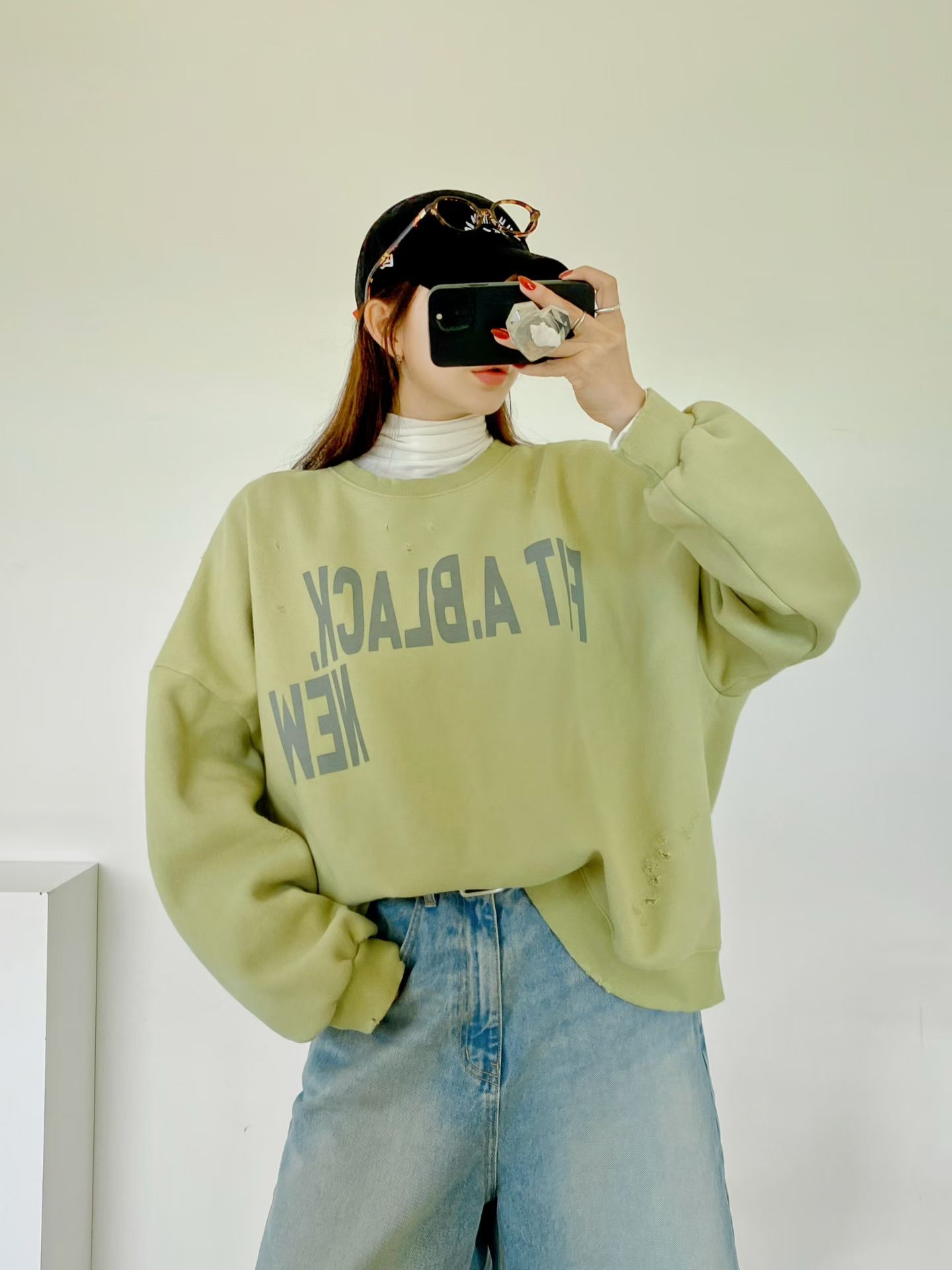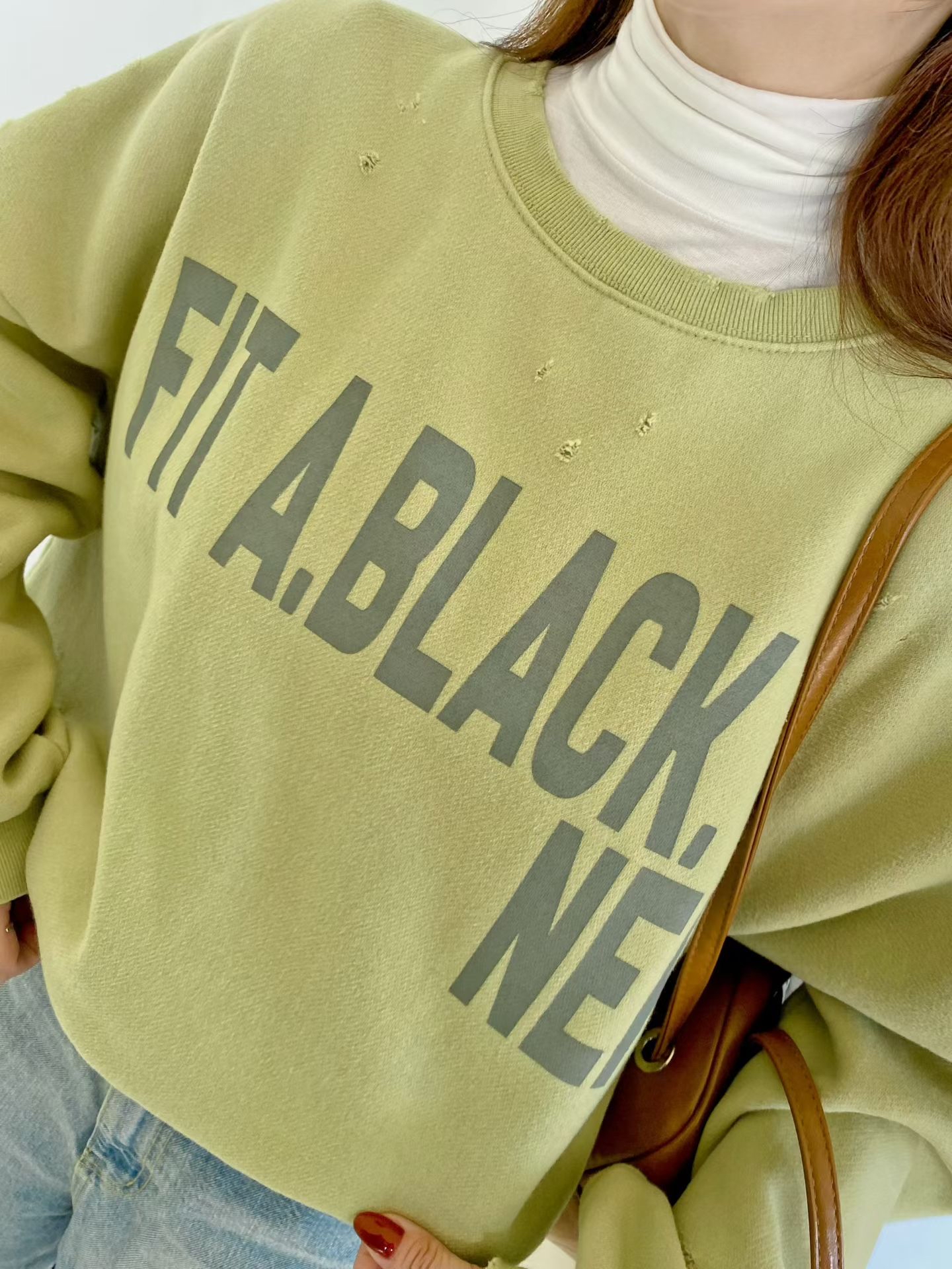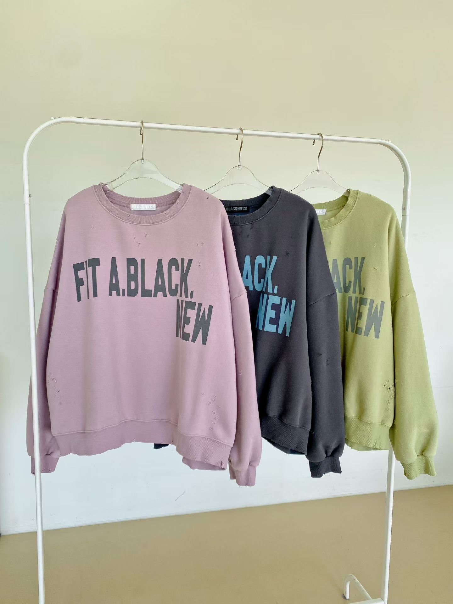 NB08 英文字破爛衛衣 3色 粉/炭灰/綠 Chest 56" length 23"