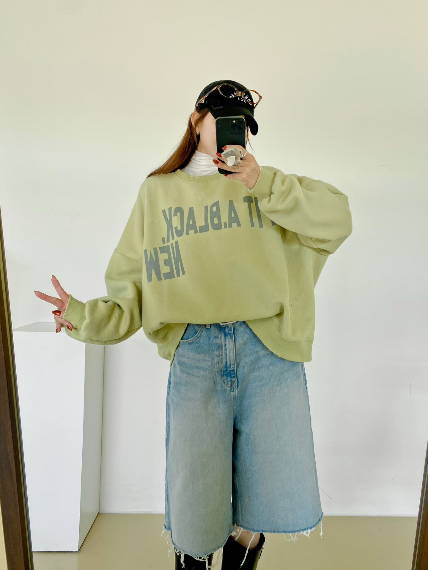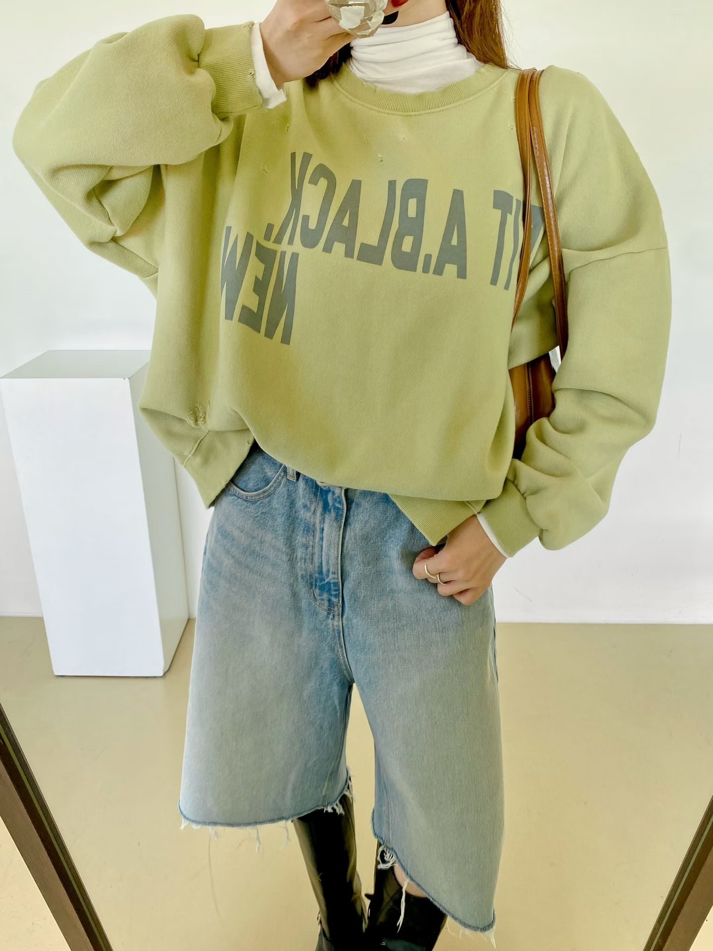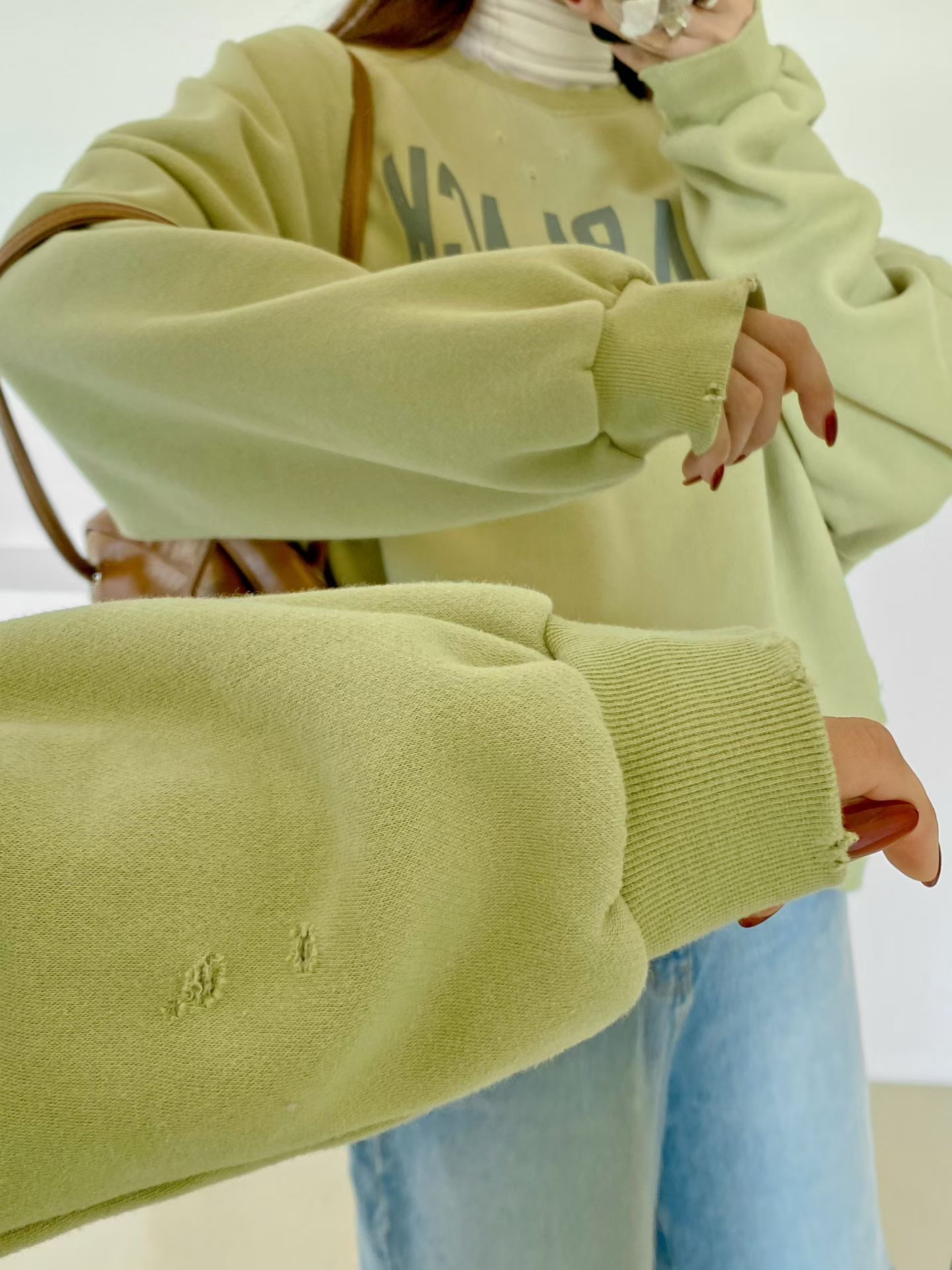NB08 英文字破爛衛衣 3色 粉/炭灰/綠 Chest 56" length 23"