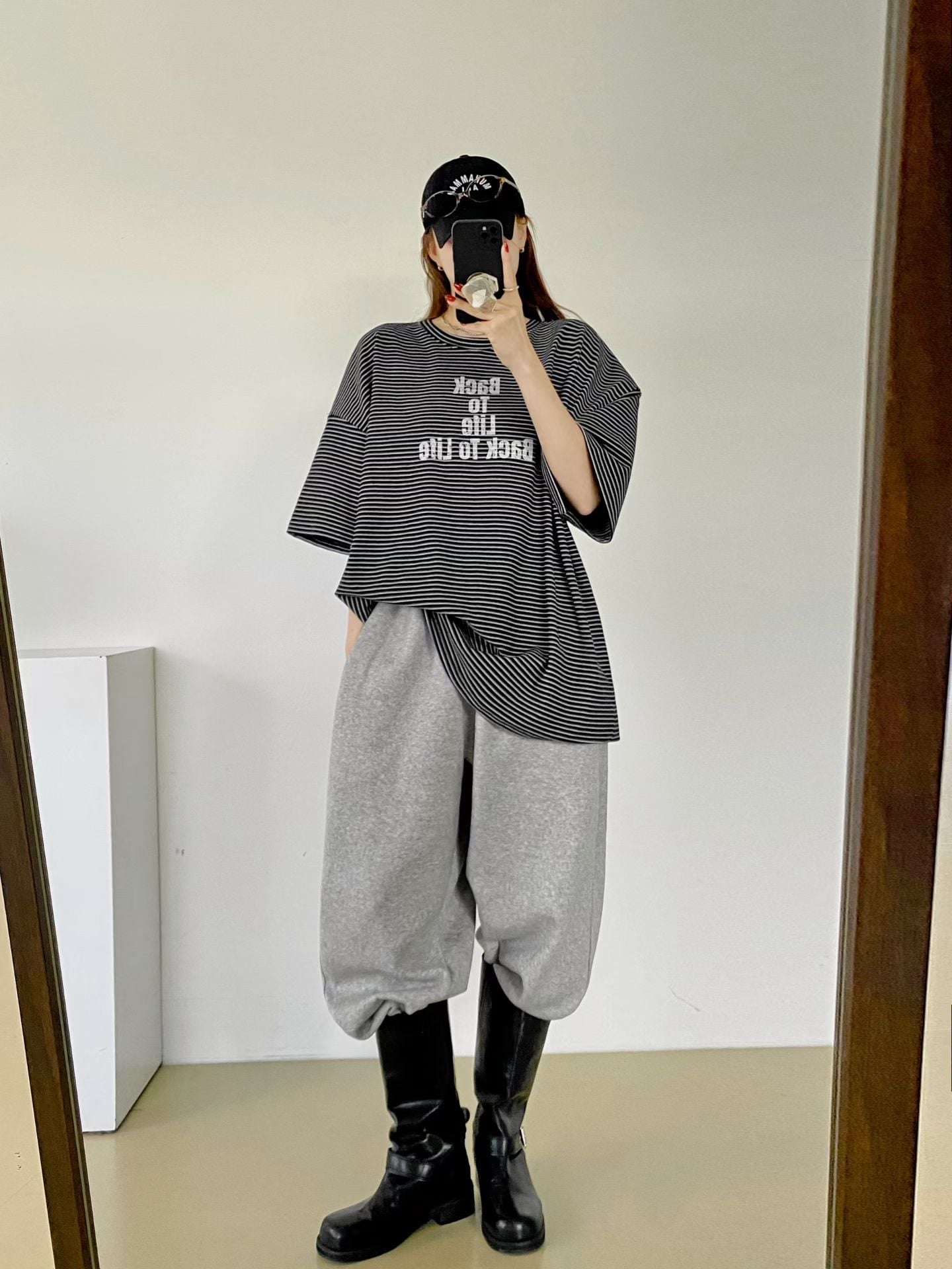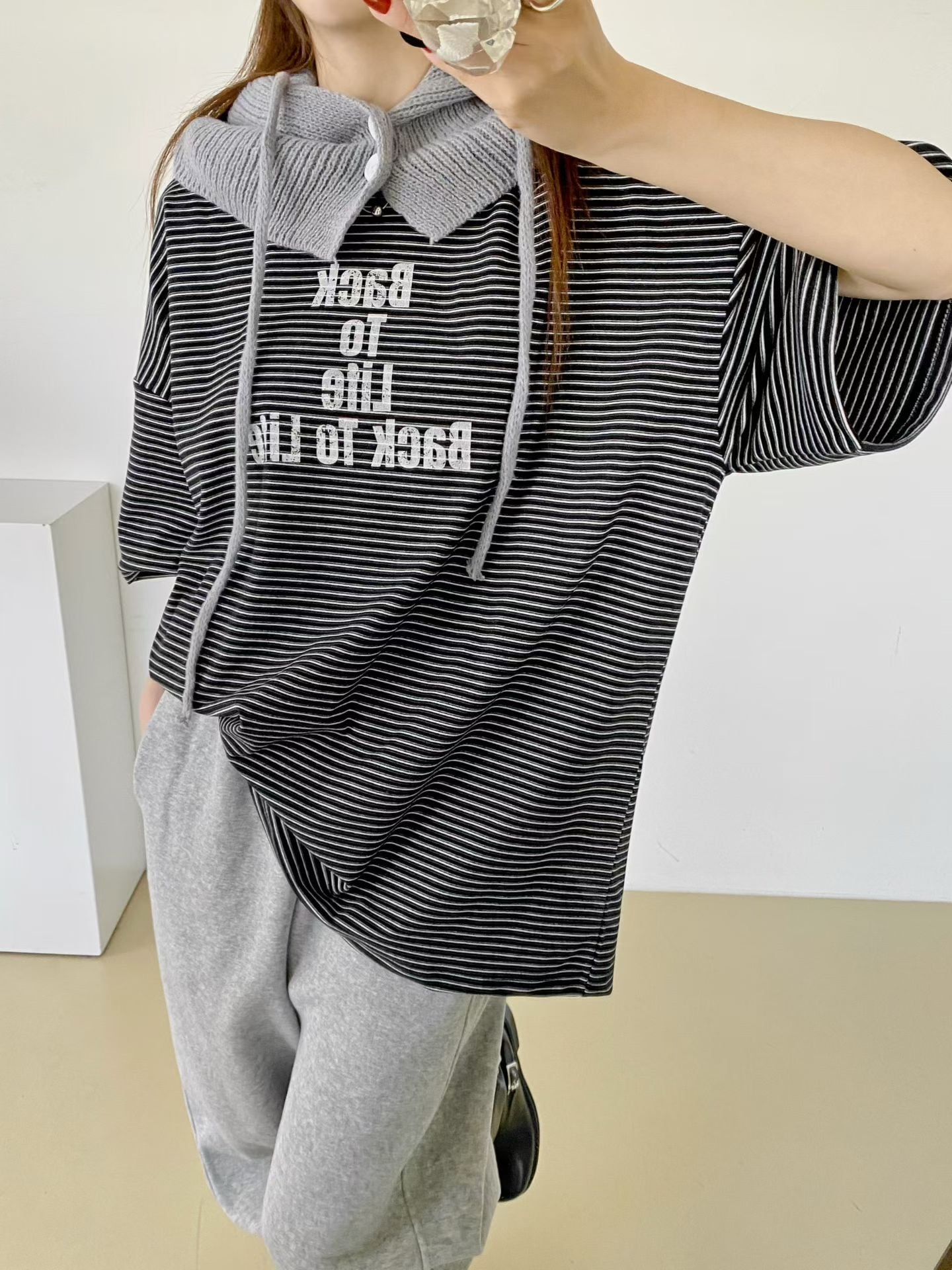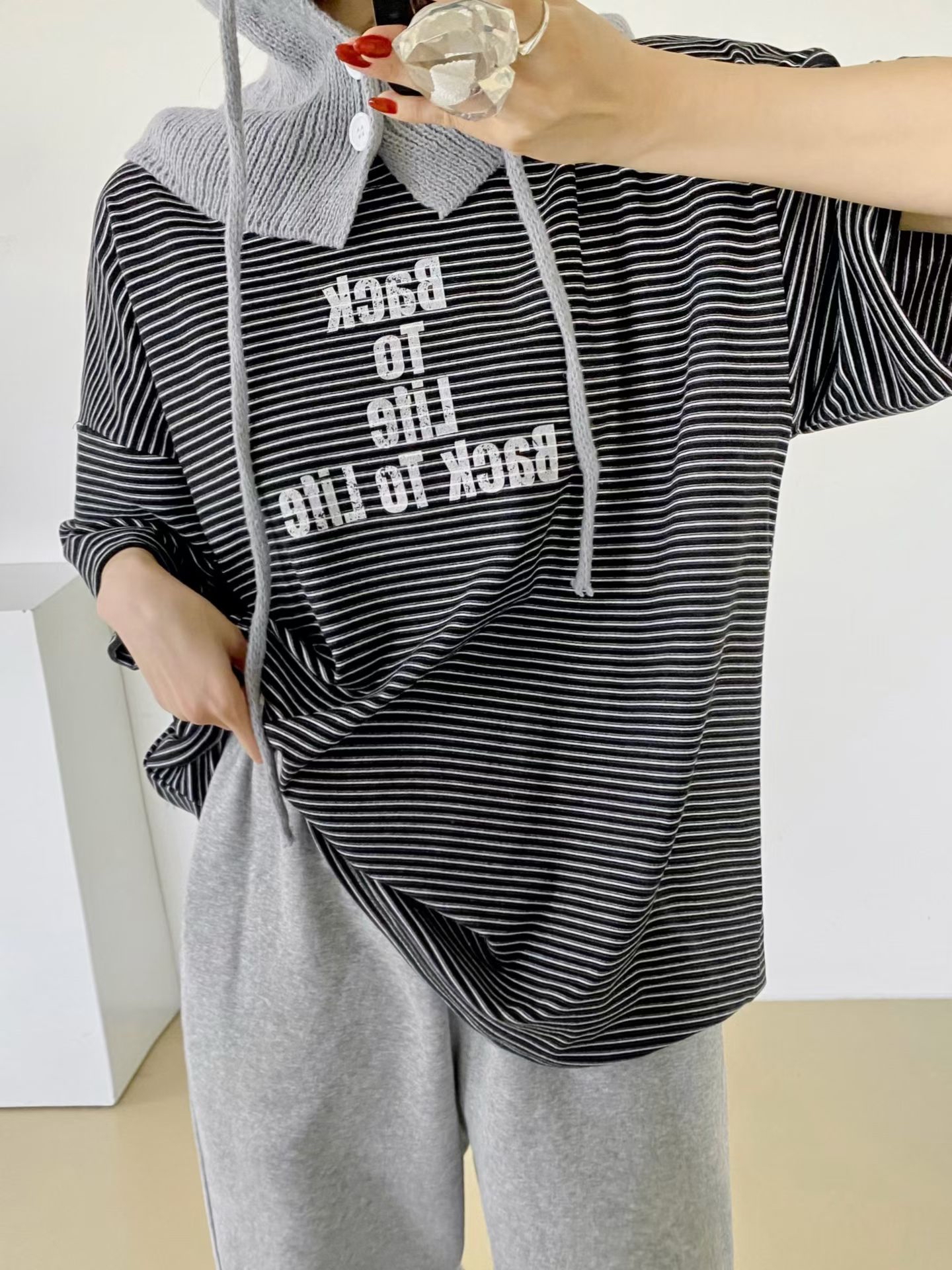 NB12 英文字間條Tee 3色 米/黑/卡其 Chest 52" length 28.5"