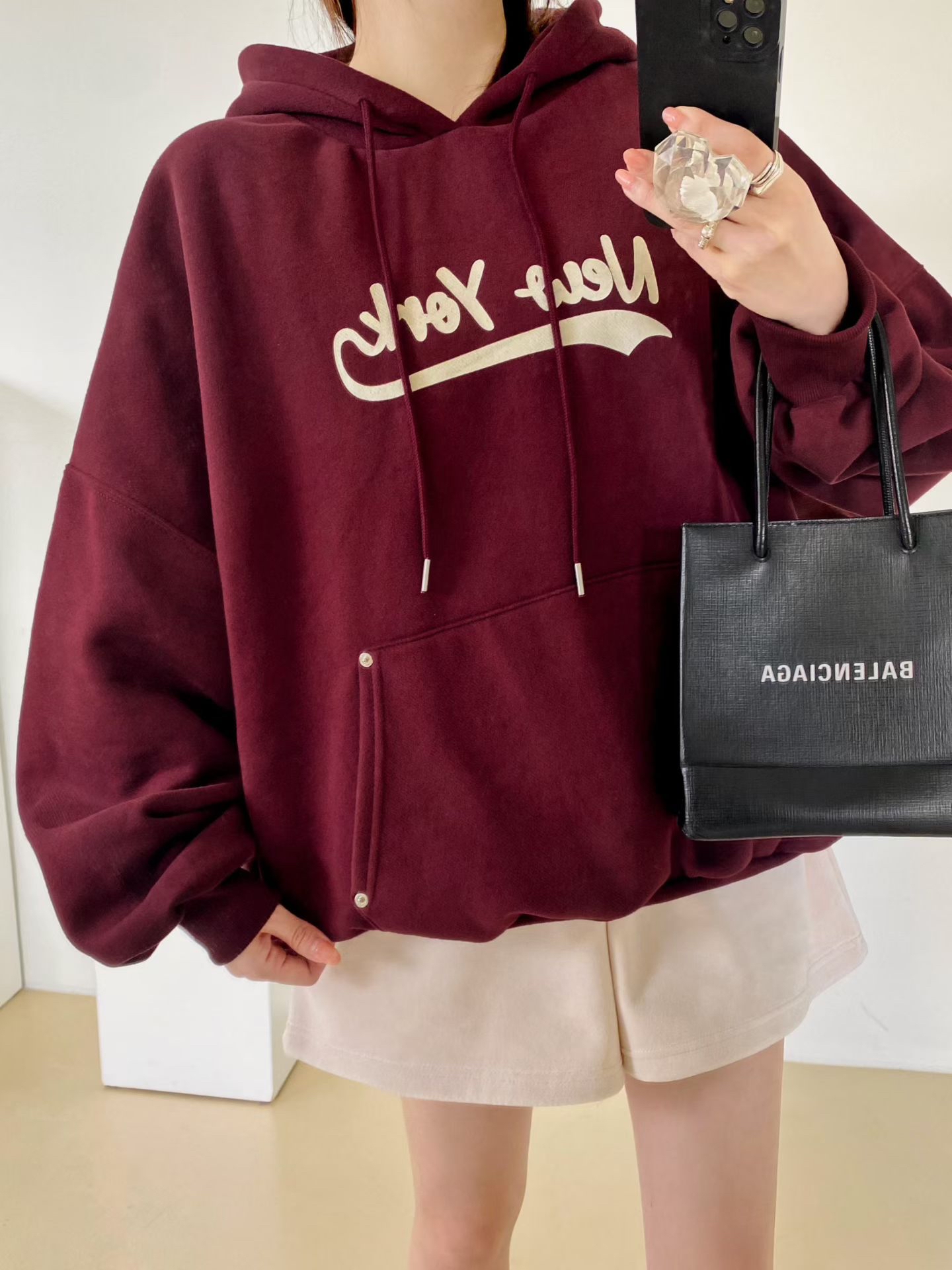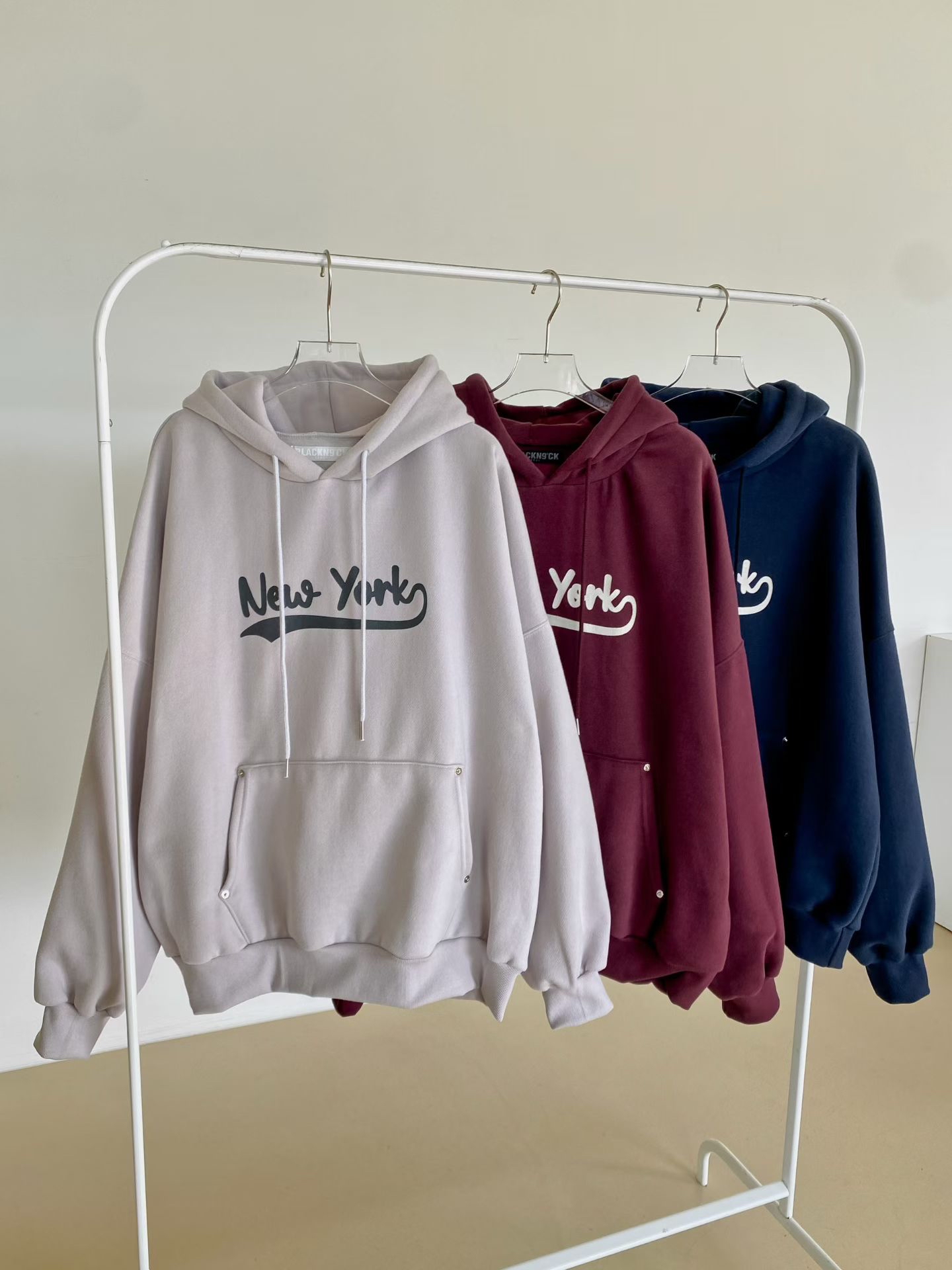NB28 New York 有帽衛衣 3色 灰杏/紅/深藍 Chest 56" length 27