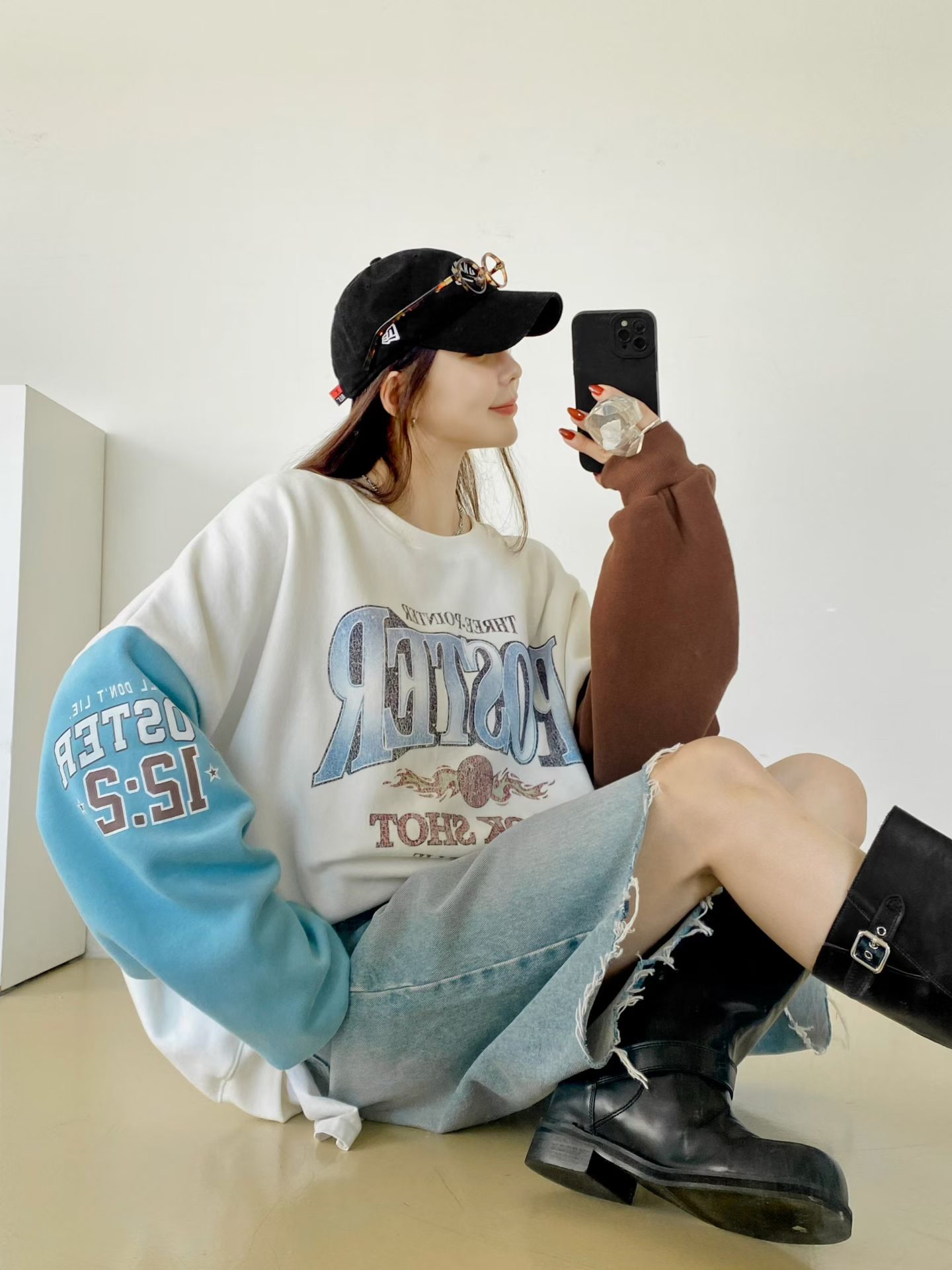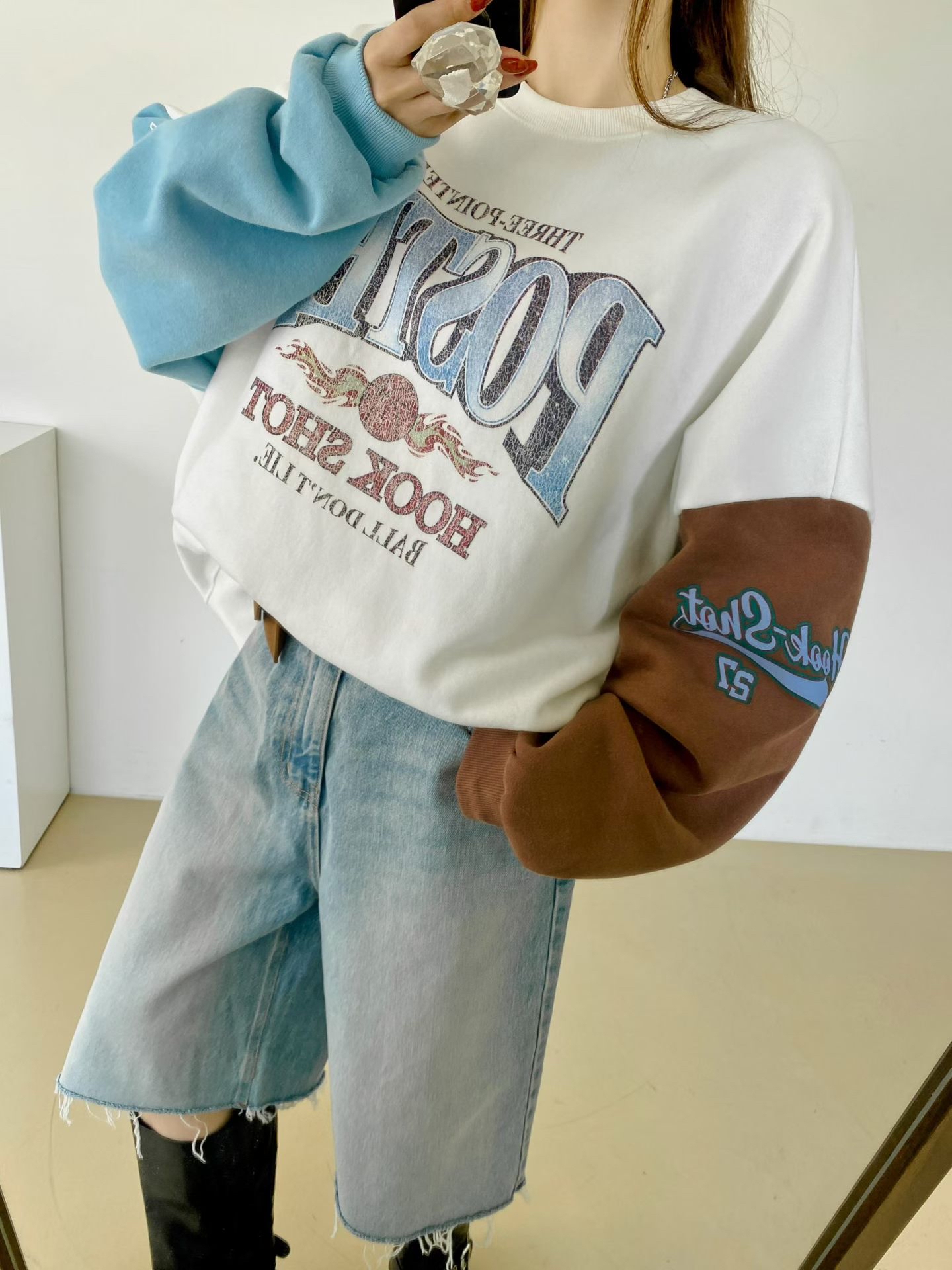 NB39 poster 拼色袖衛衣