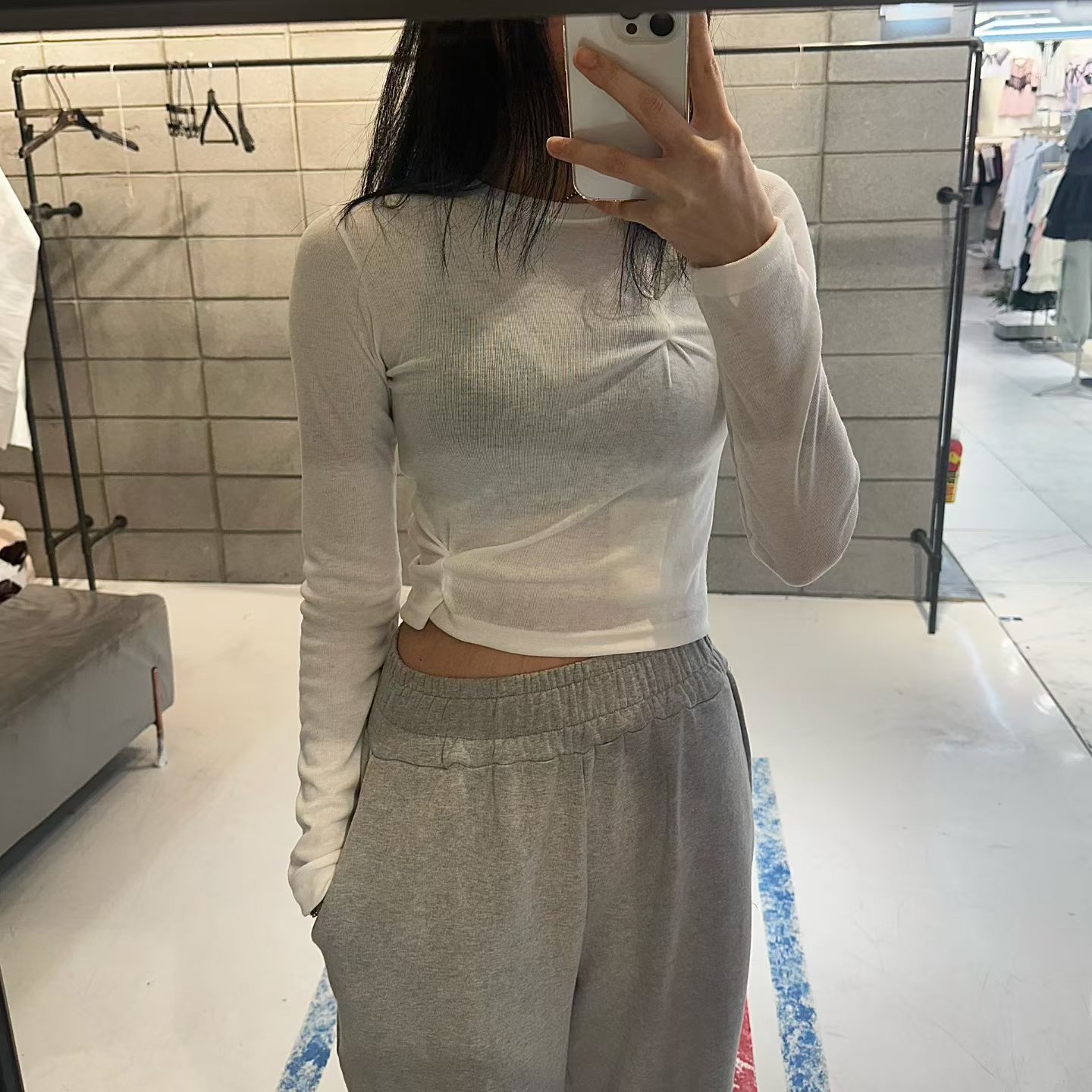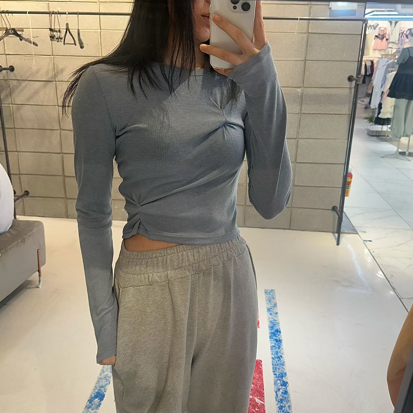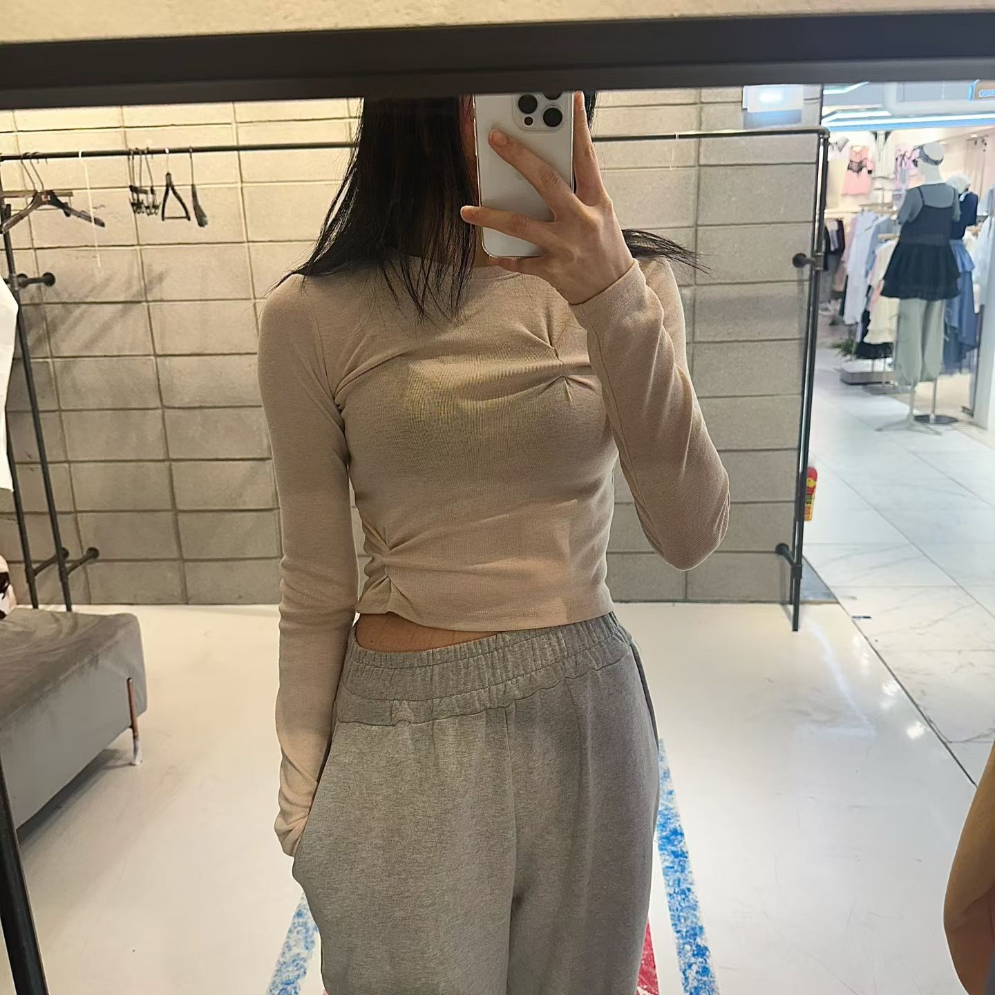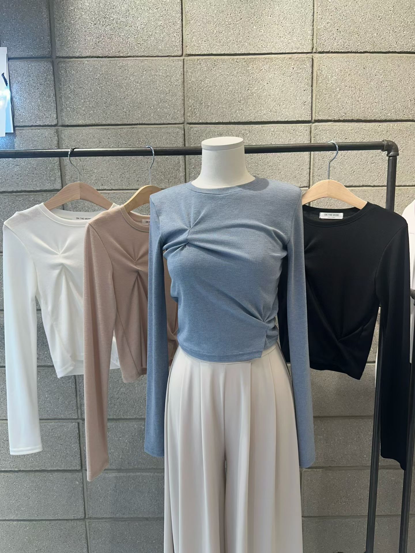 OTM04 胸前皺褶短Top 4色 白/杏/藍/黑 Chest 29-40" length 18.5"