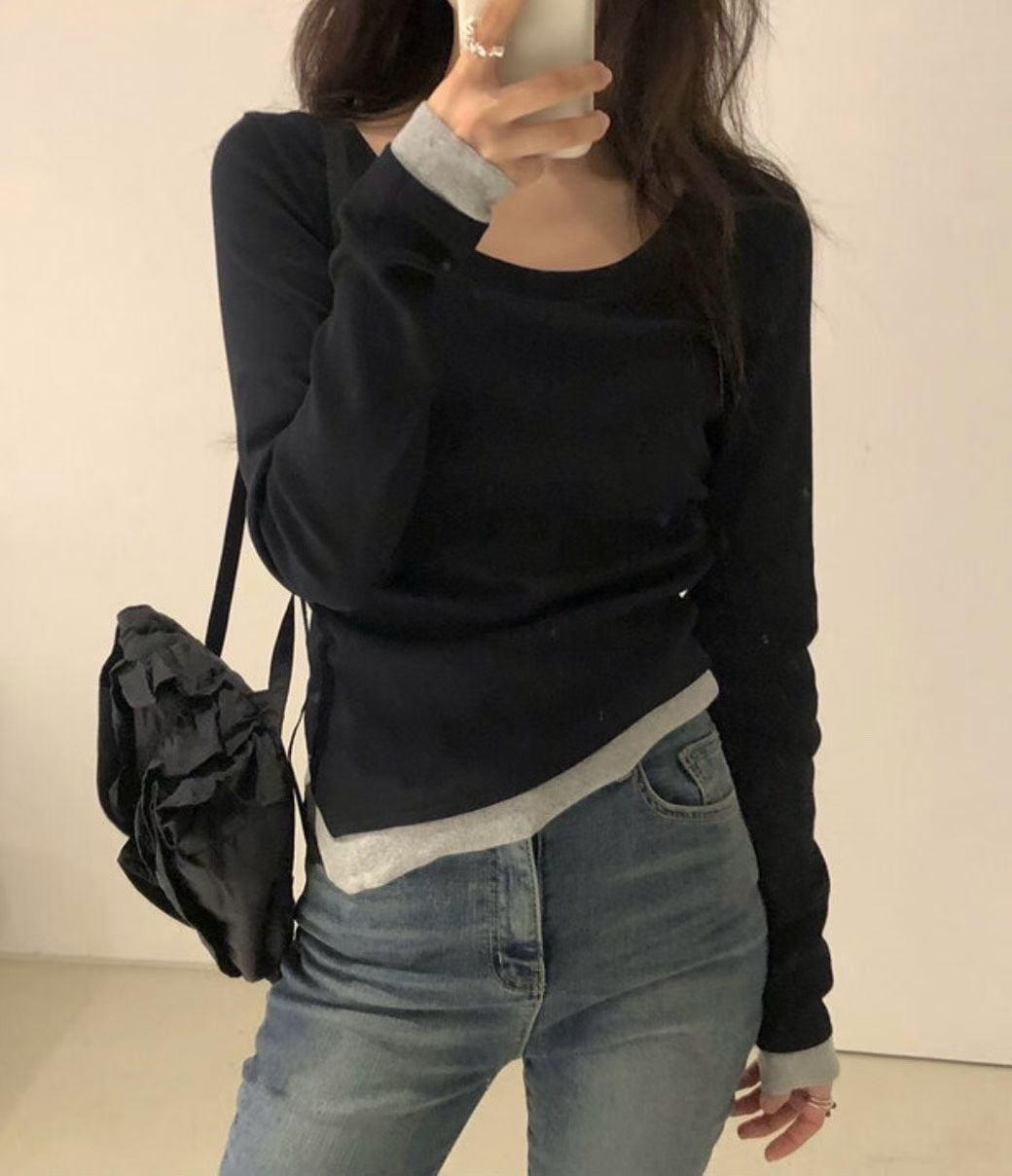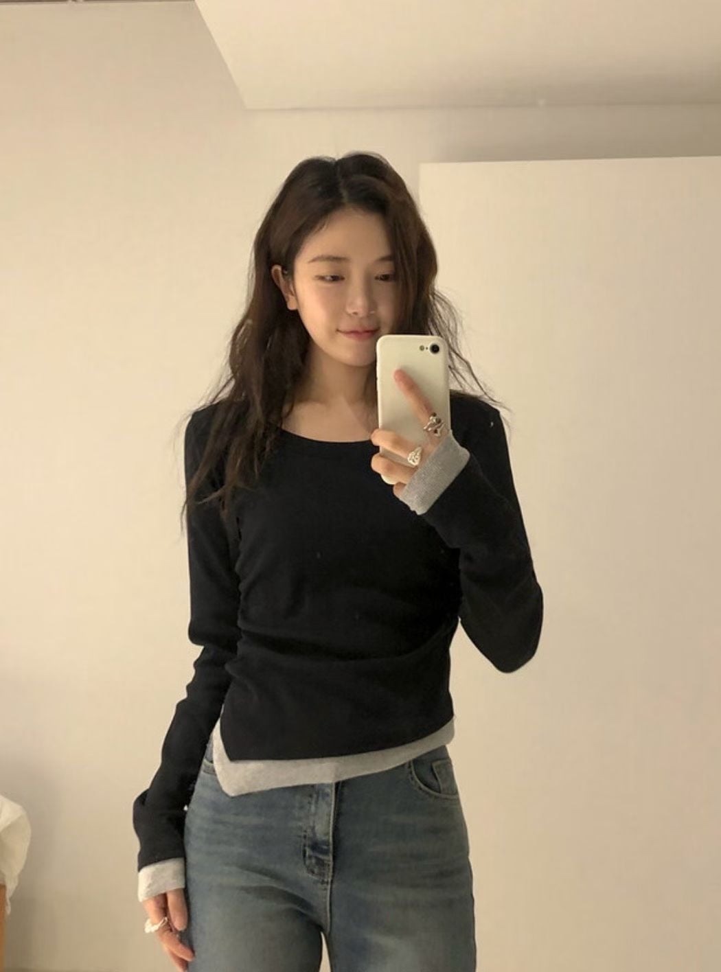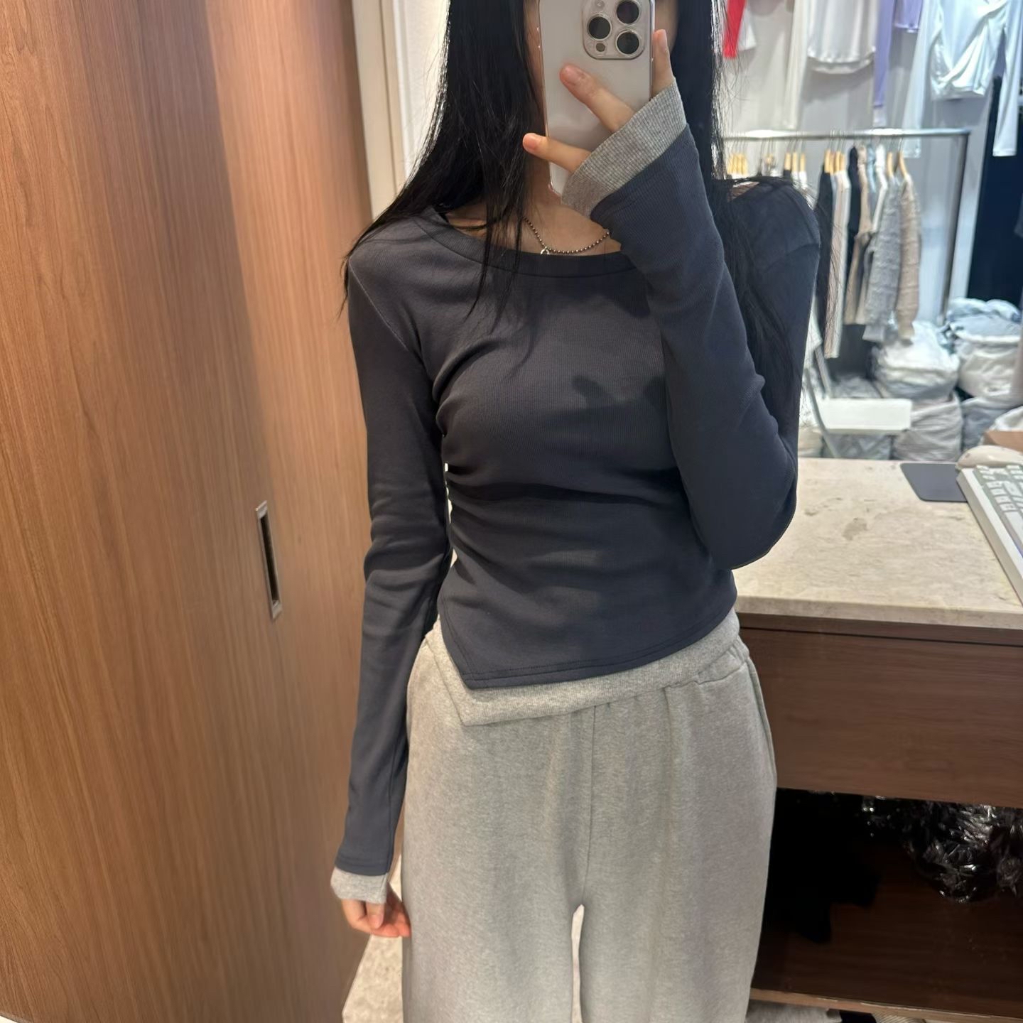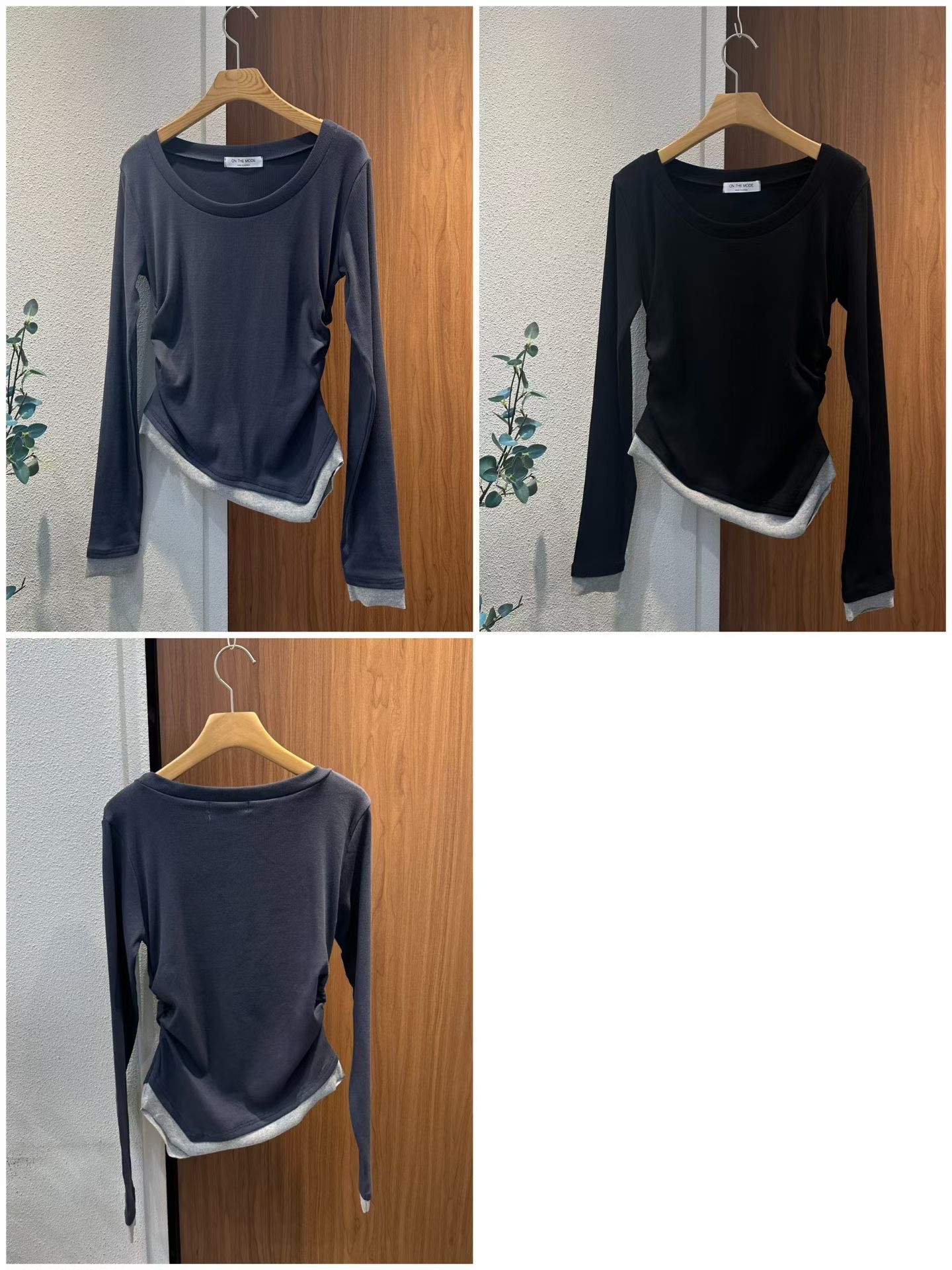 OTM07 斜腳2側皺皺Top 3色 炭灰/黑/淺灰 Chest 32-40" length 23"