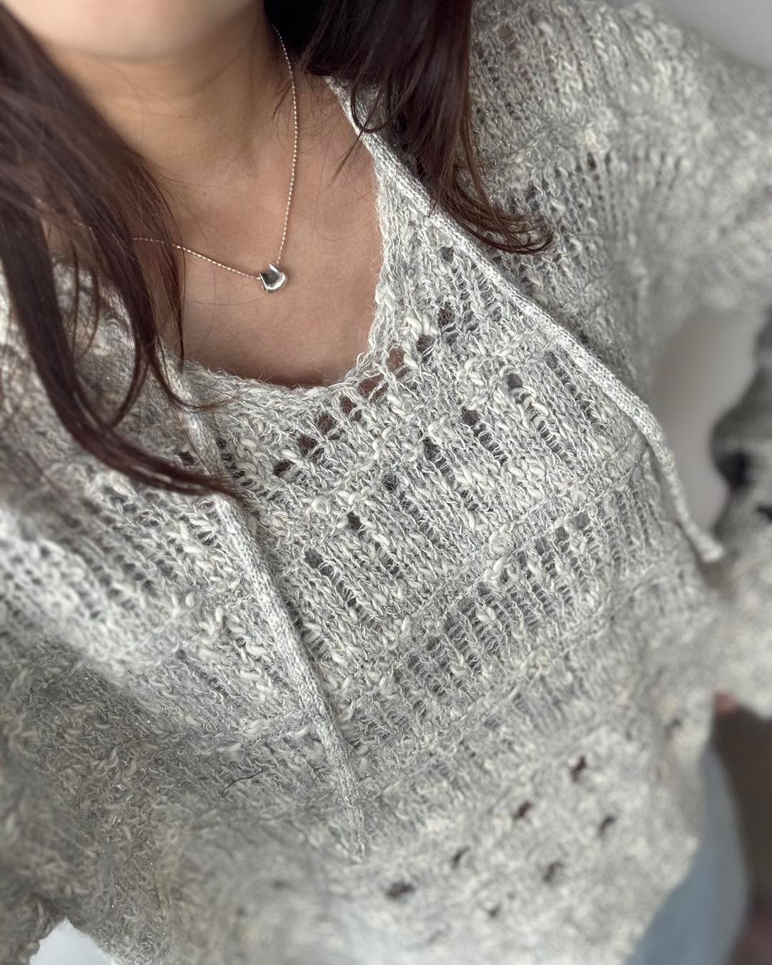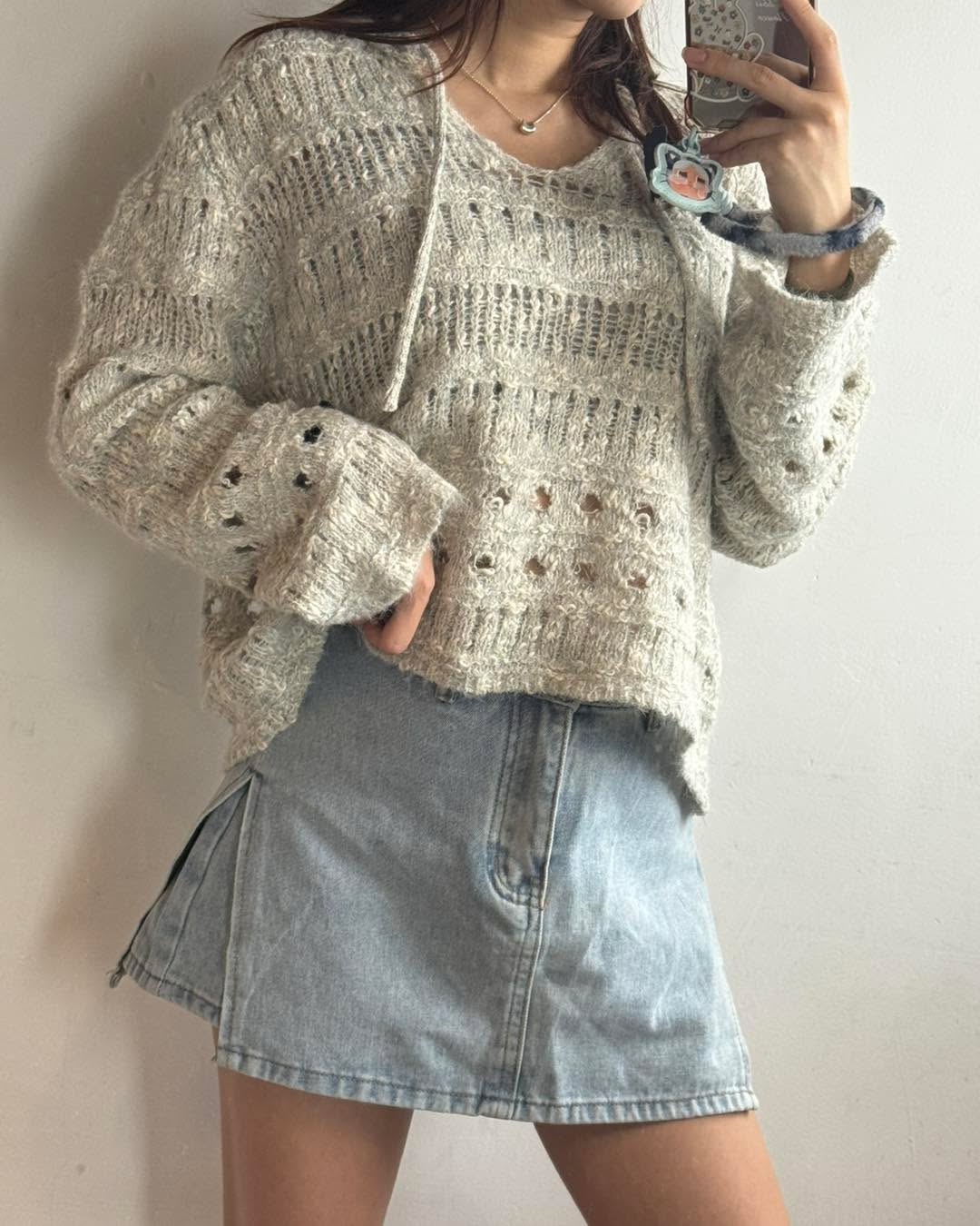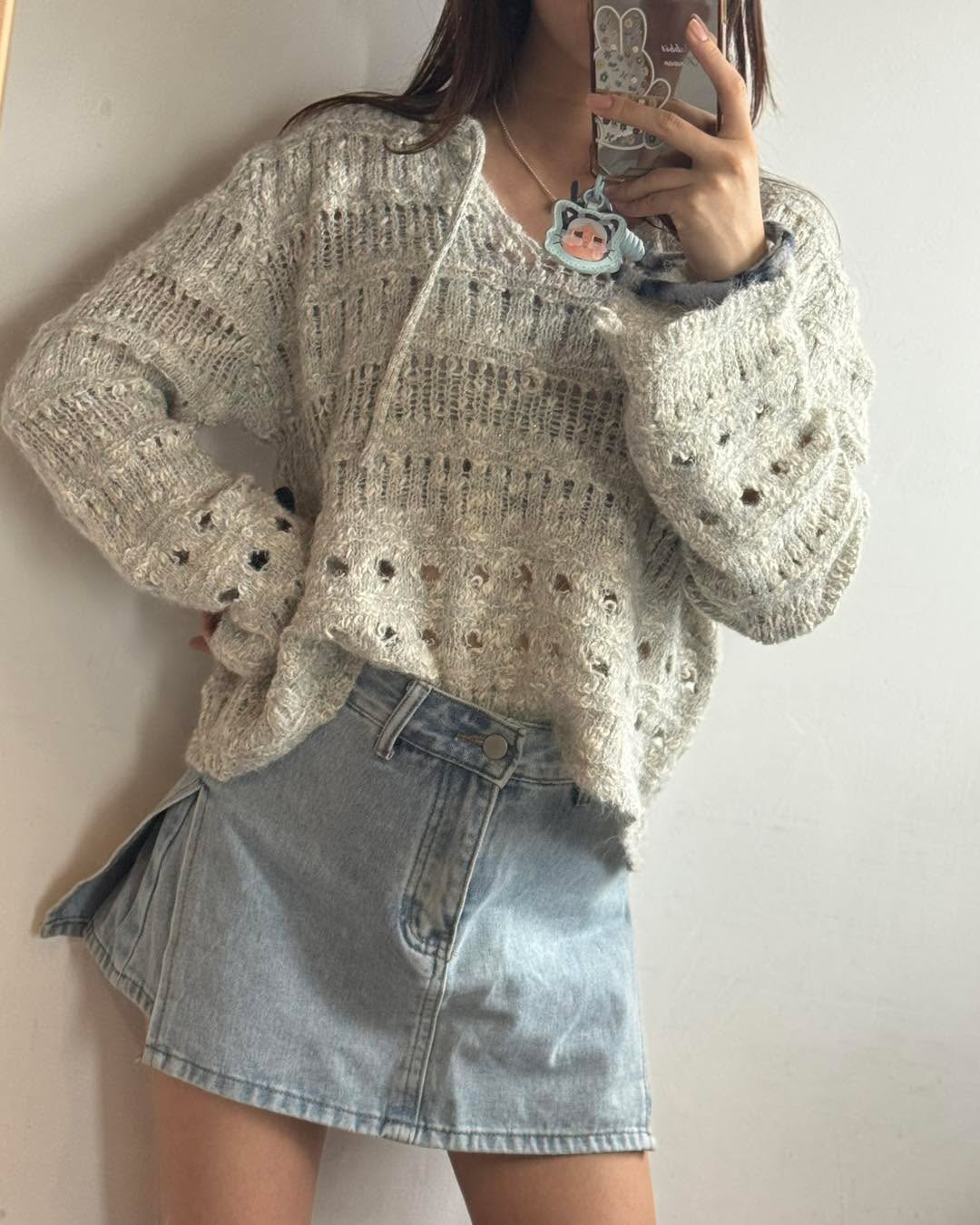 自留款😍 V領閃閃針織💰$250 好靚呀‼️‼️‼️ 質地軟熟舒服 唔會吉肉! 針織穿洞設計 再涼少少就著得啦! 2個色都好溫柔好靚! 版形好好 鬆身短cut 唔挑身形著~ 簡單襯裙仔就好好睇了! 2色 米/灰 Chest48" length 22"