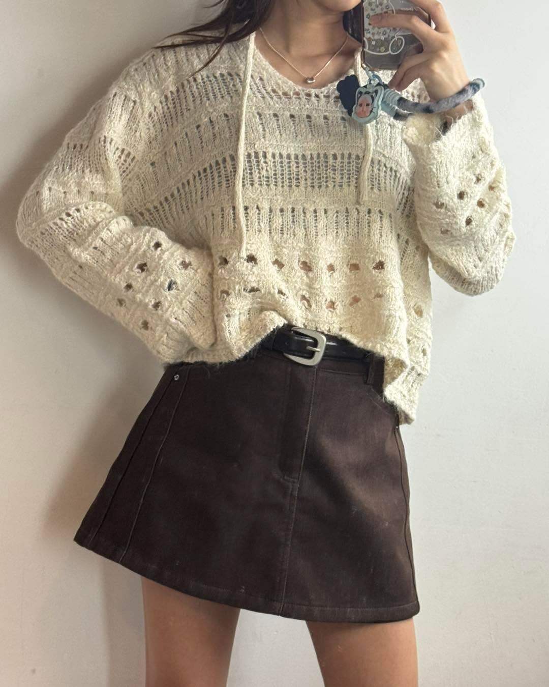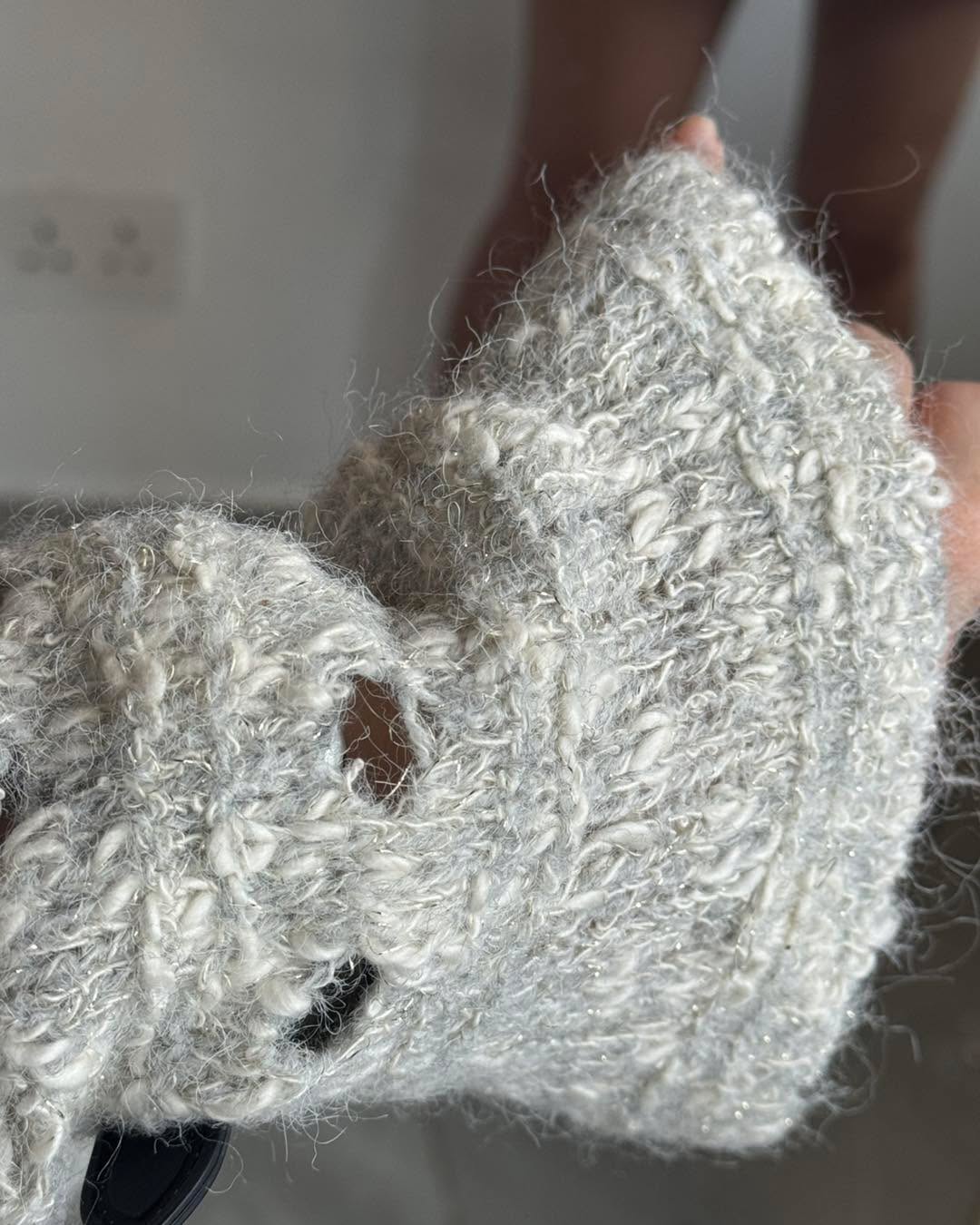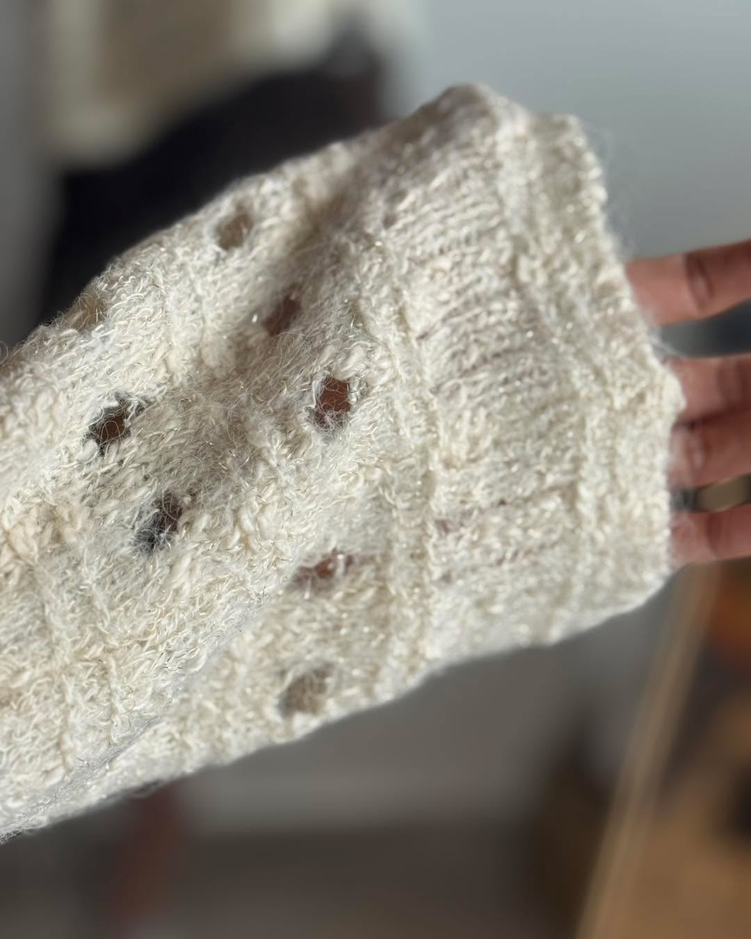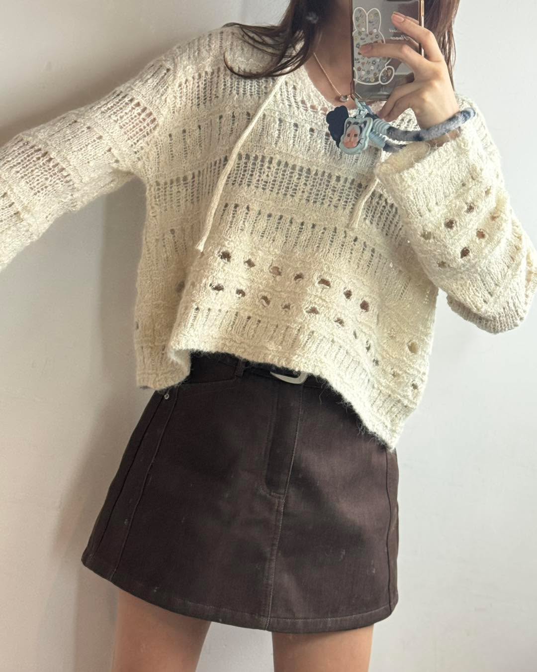 自留款😍 V領閃閃針織💰$250 好靚呀‼️‼️‼️ 質地軟熟舒服 唔會吉肉! 針織穿洞設計 再涼少少就著得啦! 2個色都好溫柔好靚! 版形好好 鬆身短cut 唔挑身形著~ 簡單襯裙仔就好好睇了! 2色 米/灰 Chest48" length 22"